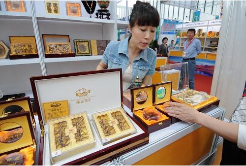 一家來自西藏的參展商展出蟲草制品(5月10日攝)。5月10日,由商務(wù)部和江蘇省人民政府聯(lián)合主辦的第七屆跨國零售集團(tuán)采購會在南京開幕,近2000家采購商及供應(yīng)商參加了采購會。本屆采購會吸引了沃爾瑪、家樂福、大潤發(fā)等近20家跨國零售集團(tuán)以及國內(nèi)大型商貿(mào)流通企業(yè)和國際采購商。