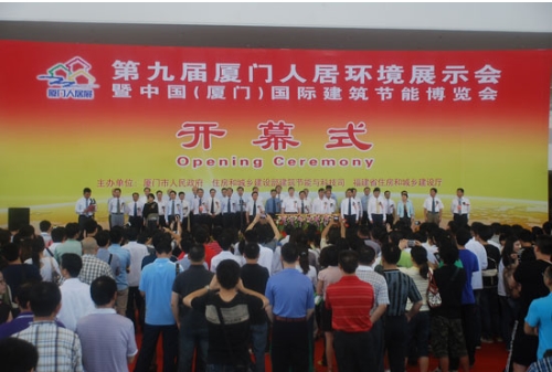 5月18日上午,“第九屆廈門人居環(huán)境展示會暨中國(廈門)國際建筑節(jié)能博覽會”在廈門國際會展中心隆重開幕。此次展會由廈門市人民政府、住房和城鄉(xiāng)建設(shè)部建筑節(jié)能與科技司、福建省住房和城鄉(xiāng)建設(shè)廳共同主辦。住房和城鄉(xiāng)建設(shè)部建筑節(jié)能與科技司司長陳宜明先生、住房和城鄉(xiāng)建設(shè)部科技發(fā)展促進(jìn)中心主任、廈門市人大常委副主任、廈門市人民政府副市長林國耀先生、福建省住房和城鄉(xiāng)建設(shè)廳總工程師周武進(jìn)先生、協(xié)辦單位領(lǐng)導(dǎo)、廈門各級政府領(lǐng)導(dǎo)、廈門新城建設(shè)指揮部領(lǐng)導(dǎo)、重點(diǎn)項(xiàng)目參展單位領(lǐng)導(dǎo)、特邀協(xié)辦單位領(lǐng)導(dǎo)、企業(yè)領(lǐng)導(dǎo)等共同見證了儀式的啟動。