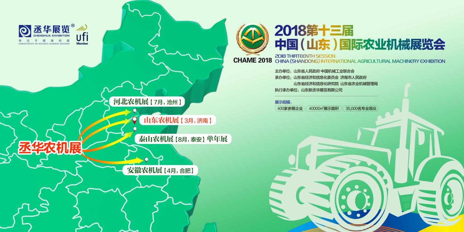 為進一步提高山東提高農業(yè)技術裝備和信息化水平,2018年3月6—8日,由山東省人民政府、中國機械工業(yè)聯(lián)合會共同主辦,山東省經(jīng)濟和信息化委員會、山東省經(jīng)濟和信息化研究院、山東省農業(yè)機械管理局聯(lián)合承辦,山東新丞華展覽有限公司執(zhí)行承辦的“2018第十三屆中國(山東)國際農業(yè)機械展覽會(簡稱:農機展)”將在濟南國際會展中心隆重舉辦。