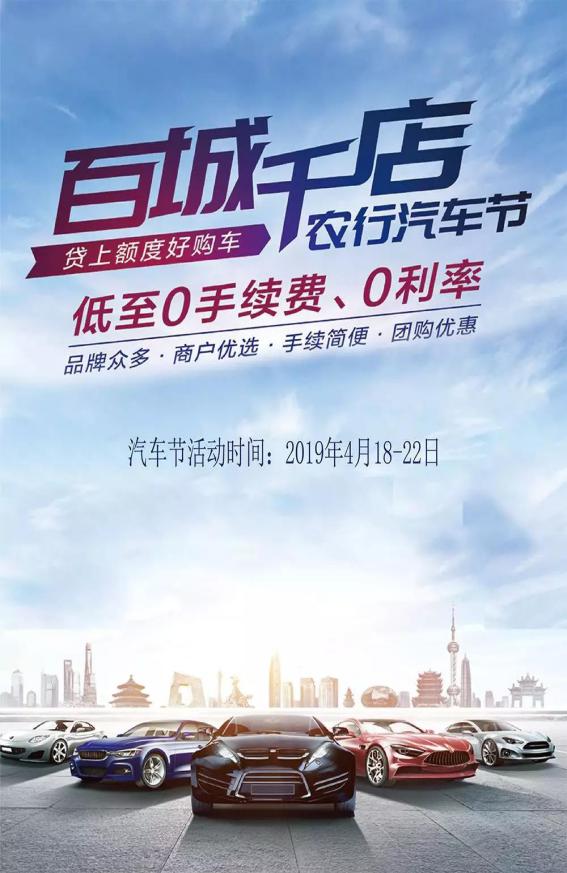 農(nóng)業(yè)銀行:百城千店農(nóng)行購車節(jié),低至0手續(xù)費(fèi)、0利率
