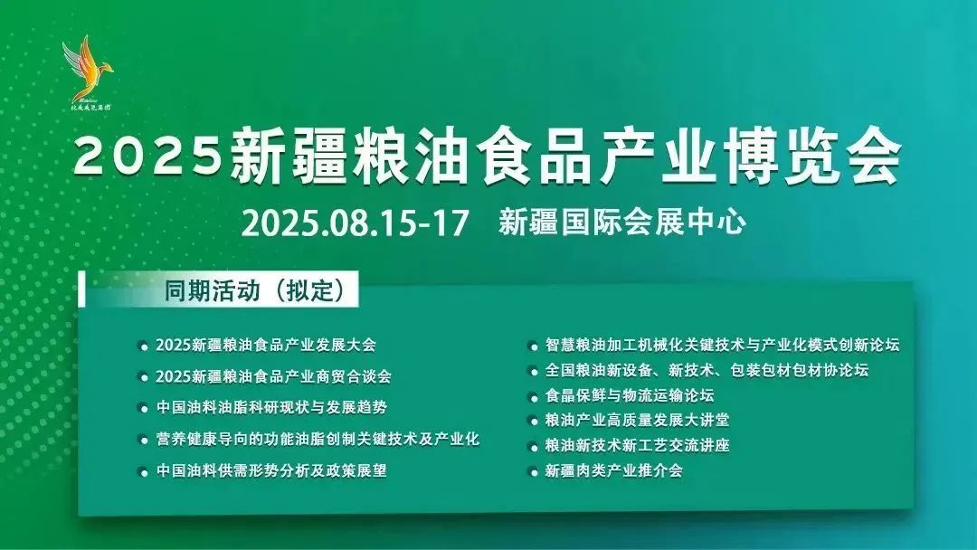 在政策紅利持續(xù)釋放、市場需求旺盛的背景下,2025 新疆糧油食品產(chǎn)業(yè)博覽會順勢而為,緊扣產(chǎn)業(yè)發(fā)展需求,致力于為行業(yè)搭建高質(zhì)量交流平臺。展會將于 2025 年 8月15-17日 在新疆國際會展中心盛大啟幕,將全方位展現(xiàn)糧油食品產(chǎn)業(yè)的創(chuàng)新成果與發(fā)展活力。?